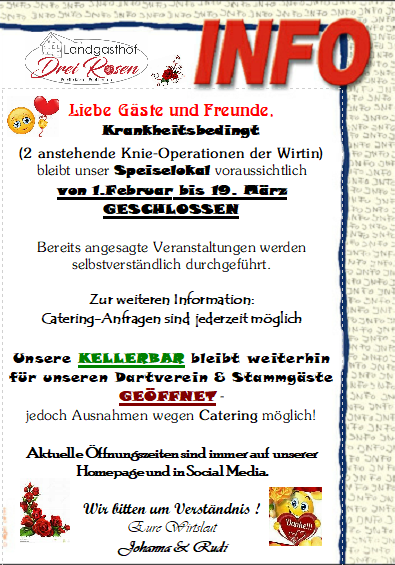 Tischreservierung - Tel.: 08266/551 oder 0152/29327214